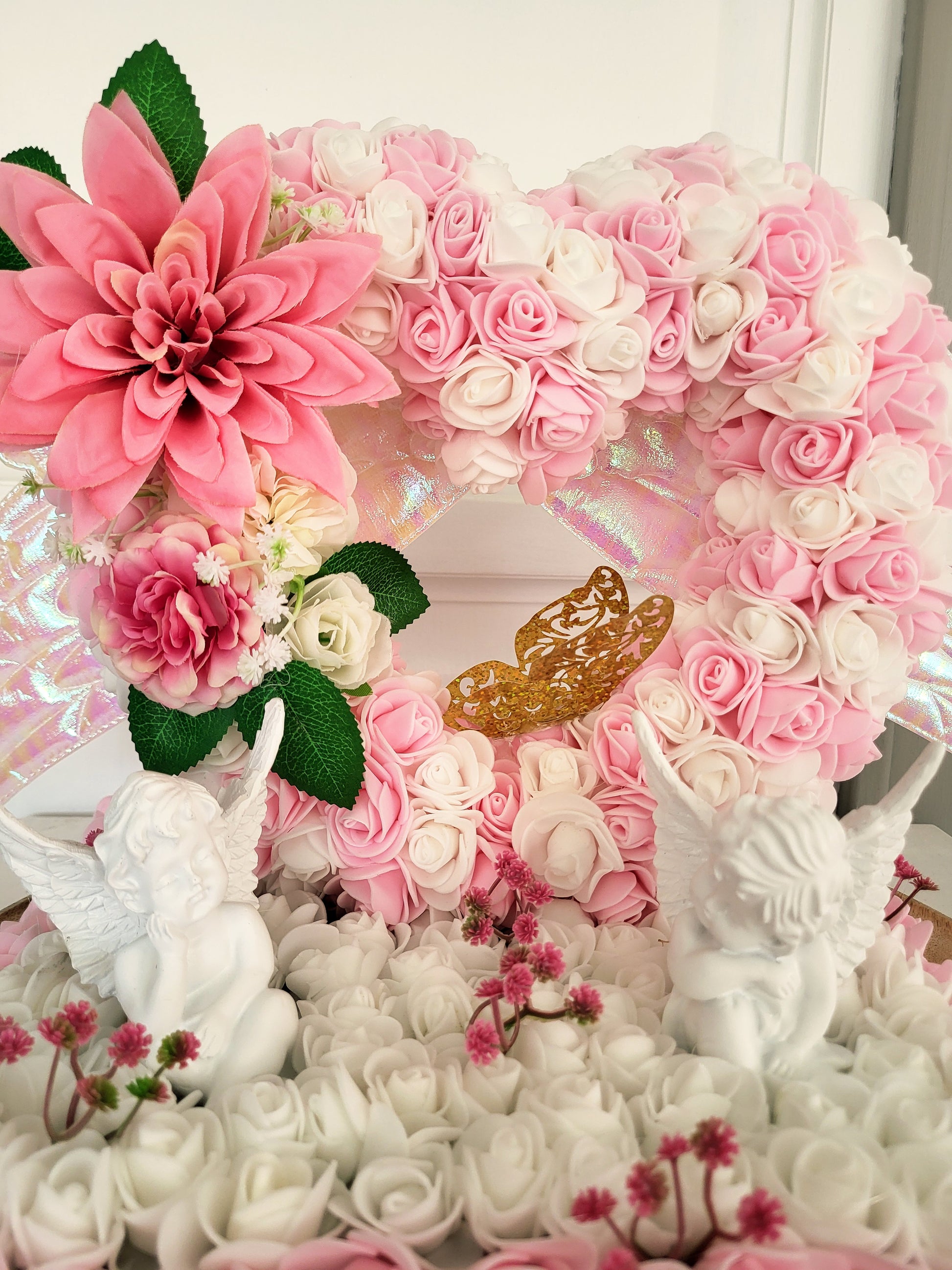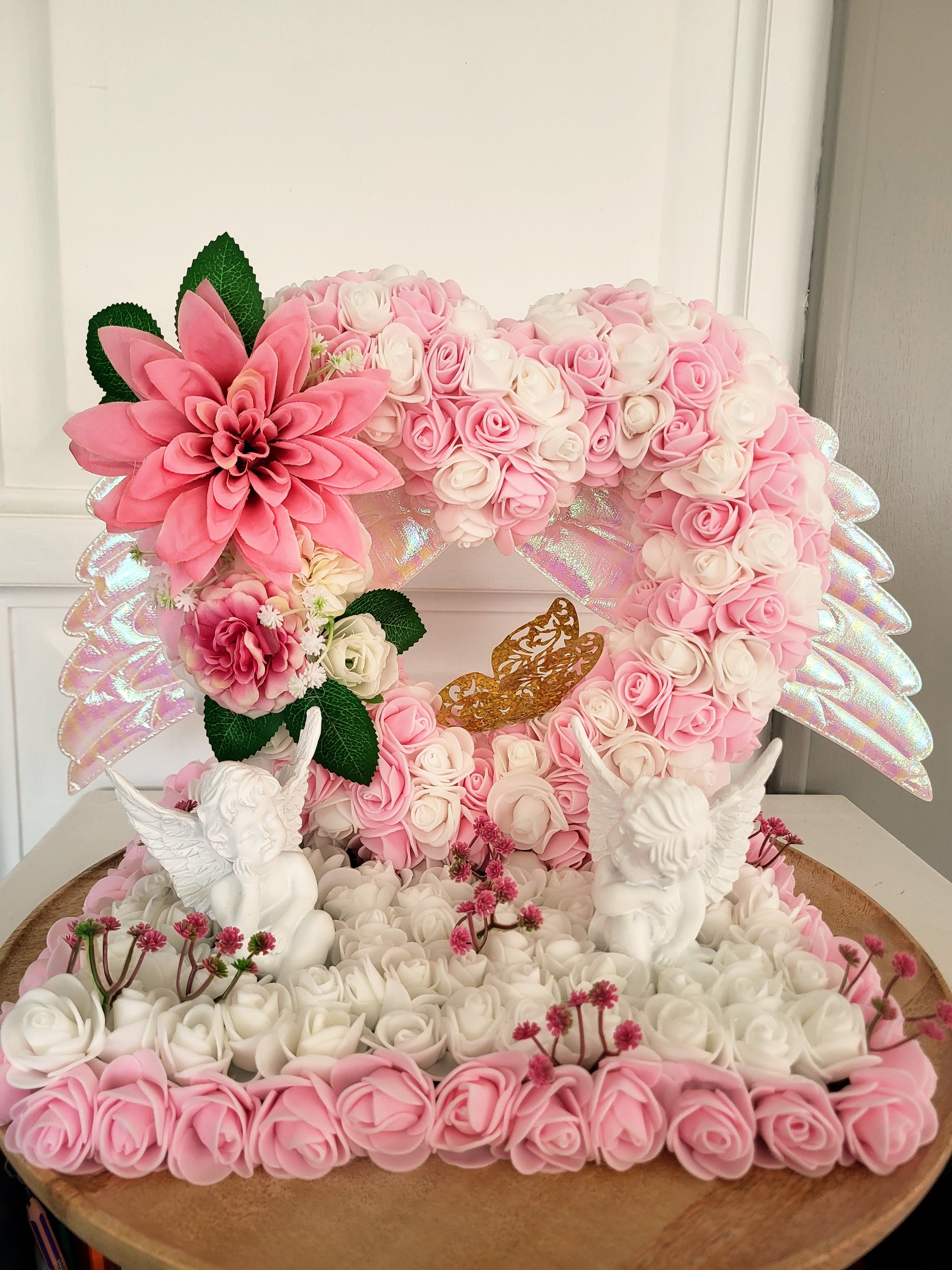 Coeur avec des ailles et deux anges pour monuments funéraire