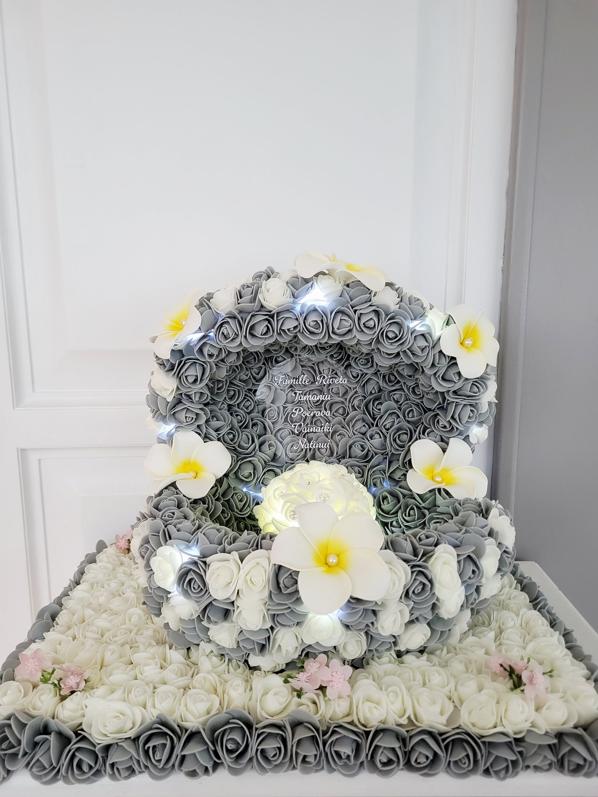 Indiquez moi la couleurs des fleurs que vous souhaitez et la personnalisation à y mettre dessus.