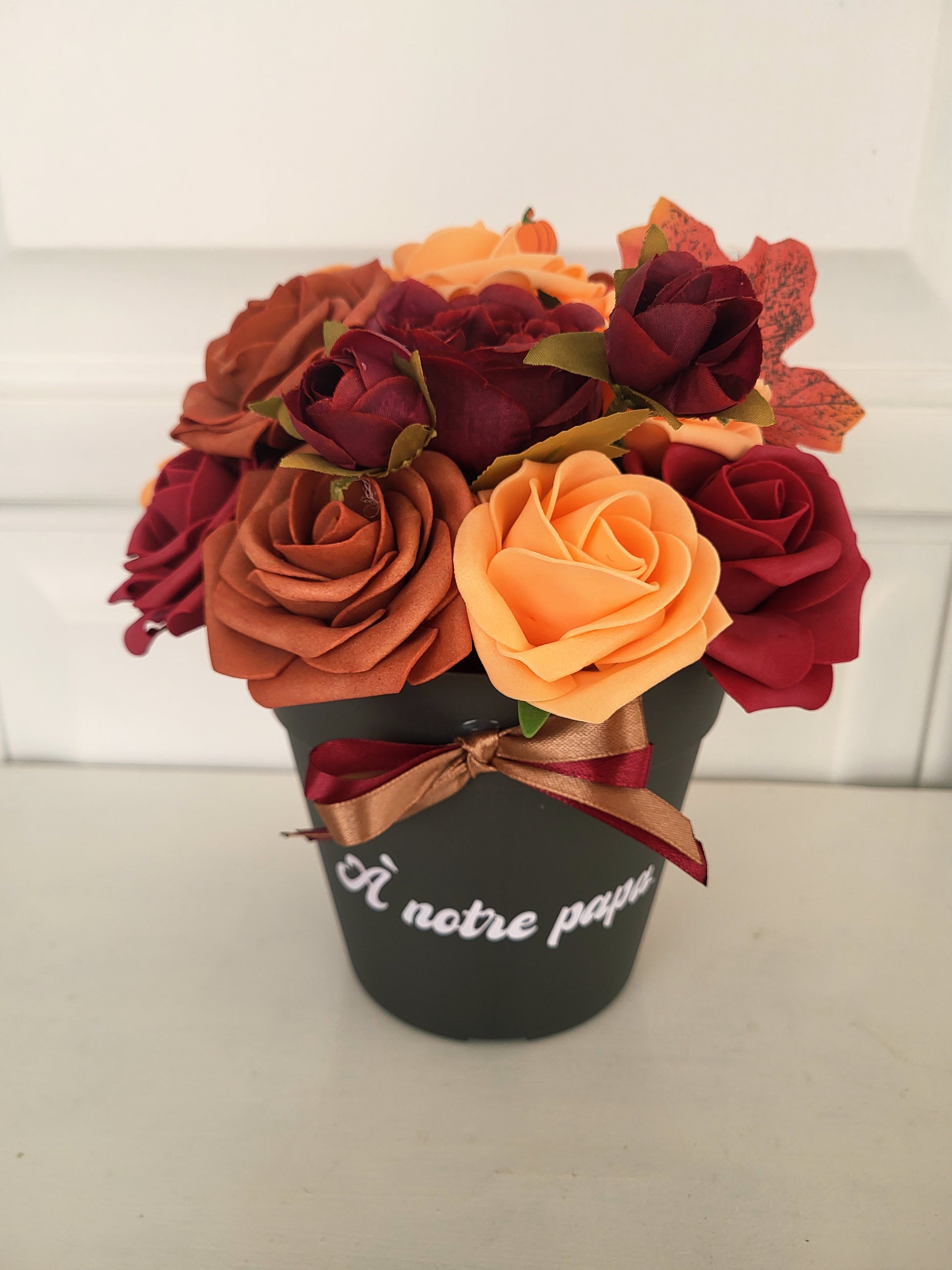Pot pour monument funéraire a personnaliser indiquez la couleurs des fleurs et du pot que vous souhaitez et la personnalisation à y mettre dessus.